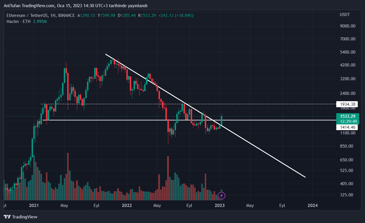 1.414 dolar destek noktasına kadar bir düzeltme yapabilecek olan Ethereum, kritik desteğin altına sarkması halinde tekrardan sert düşüşler yaşayarak altcoin’lerin dip seviyelere gerilemesine neden olabilir.
