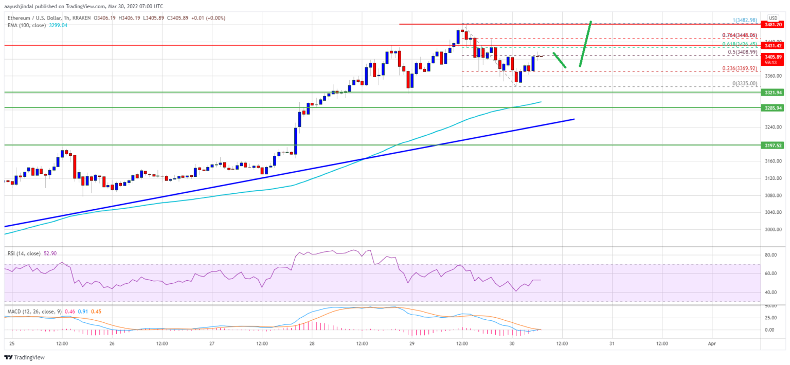 Ethereum fiyatı 3.450 dolar direncine kadar tırmansa da bu direnci kırmayı başaramayarak fiyat yeniden 3.320 dolar seviyesine doğru çekilmeye başladı.