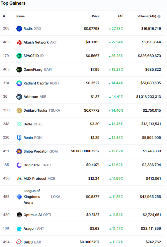 Başarılı bir veri sağlayıcısı olan CoinMarketCap’in aktardıklarına göre, son 24 özelinde ilk 500 kripto para birimi içerisinde en büyük yükselişi Radix (RDX) isimli altcoin yaşadı.