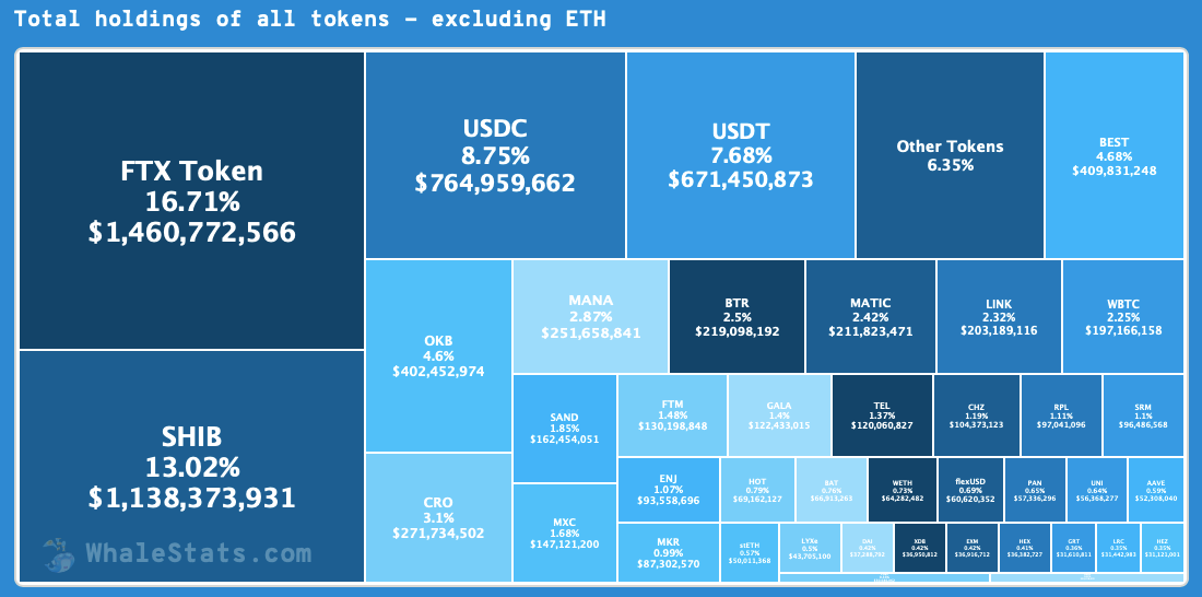 WhaleStats’ın paylaştığı verilere göre en büyük 1000 Ethereum balinasının tuttuğu kripto paralar arasında Shiba Inu ve FTX Token büyük bir ayrışma yaşıyor. Diğer altcoinlere nazaran çok daha fazla alım yapılan bu 2 altcoinden balinalar umutlu.