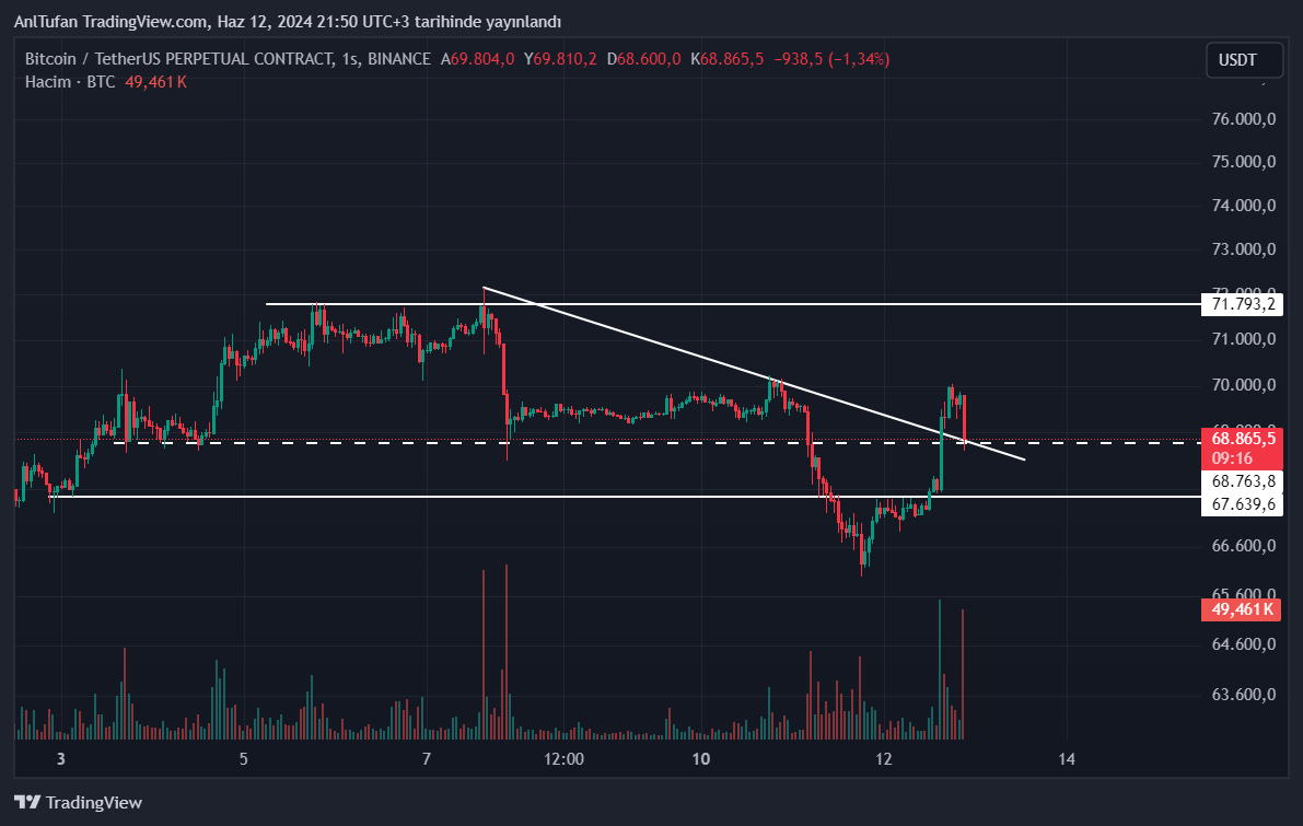 Düşen trendin retest noktası ve yatay destek seviyesi olan 68.750 dolar, Bitcoin (BTC) için şuan itibariyle en kritik seviye olarak görülmekte.