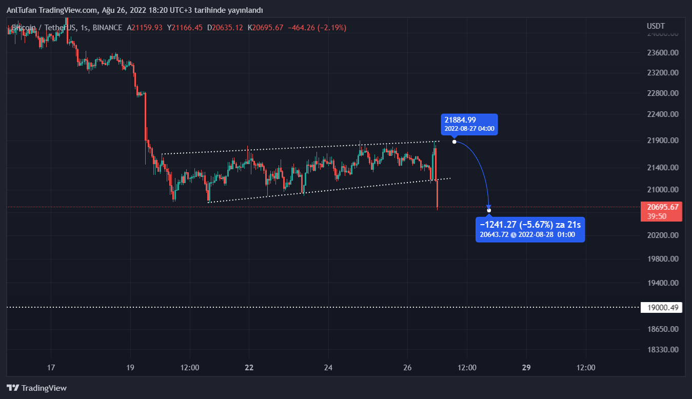 İlerleyen saatlerde çok daha sert düşüşler yaşayarak 19 bin dolara kadar değer kaybetmesini beklediğimiz Bitcoin, şuan içinde bulunduğumuz ortamda bu destek noktasında dahi tutunamayacak gibi gözüküyor.