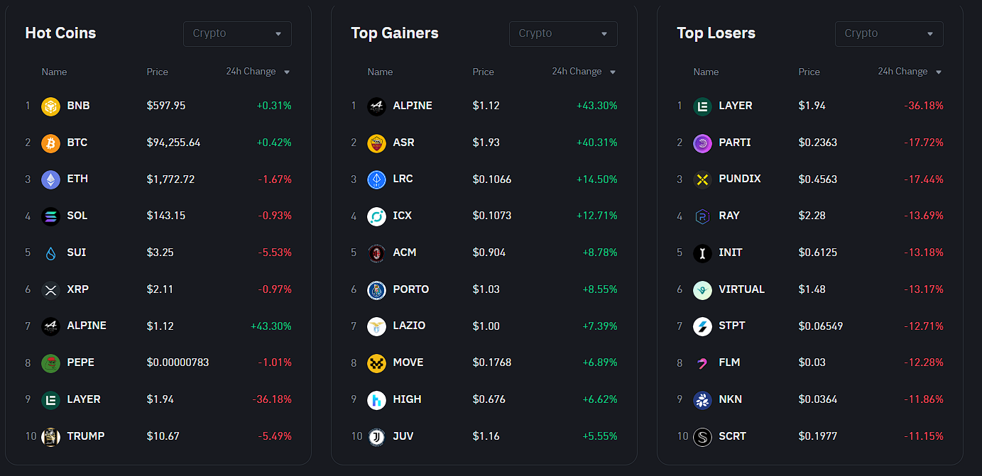 Son 24 saat içerisinde Binance‘deki altcoin’lerin genel olarak kendi iç dinamikleri doğrultusunda hareketler sergilediği görüldü. Bugünün en çok artan altcoin’leri (%40 ve üzeri) Binance spot piyasada listelenen ALPINE ve ASR oldu.
