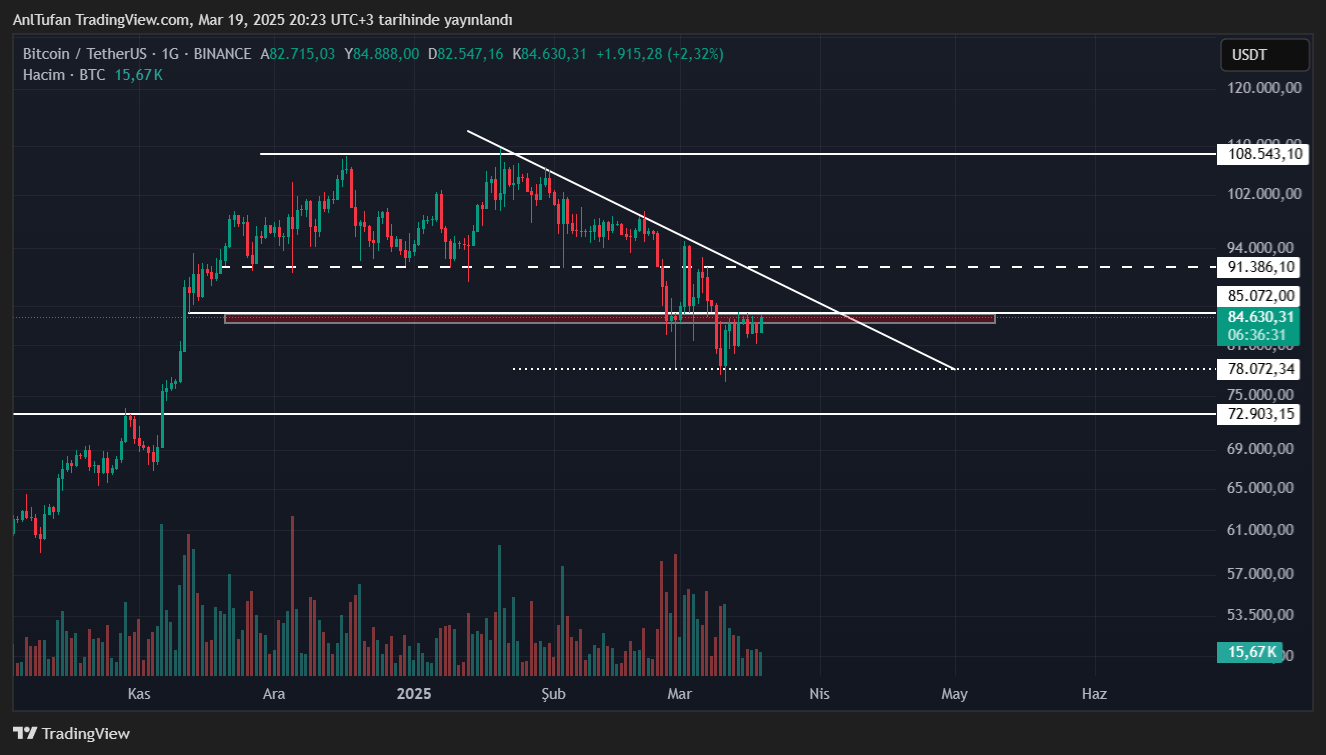FED Başkanı Powell’ın sert bir konuşma yapması durumunda ise an itibariyle direnç noktasında olan BTC, tekrardan 78 bin dolar seviyelerine kadar gerileyebilir.