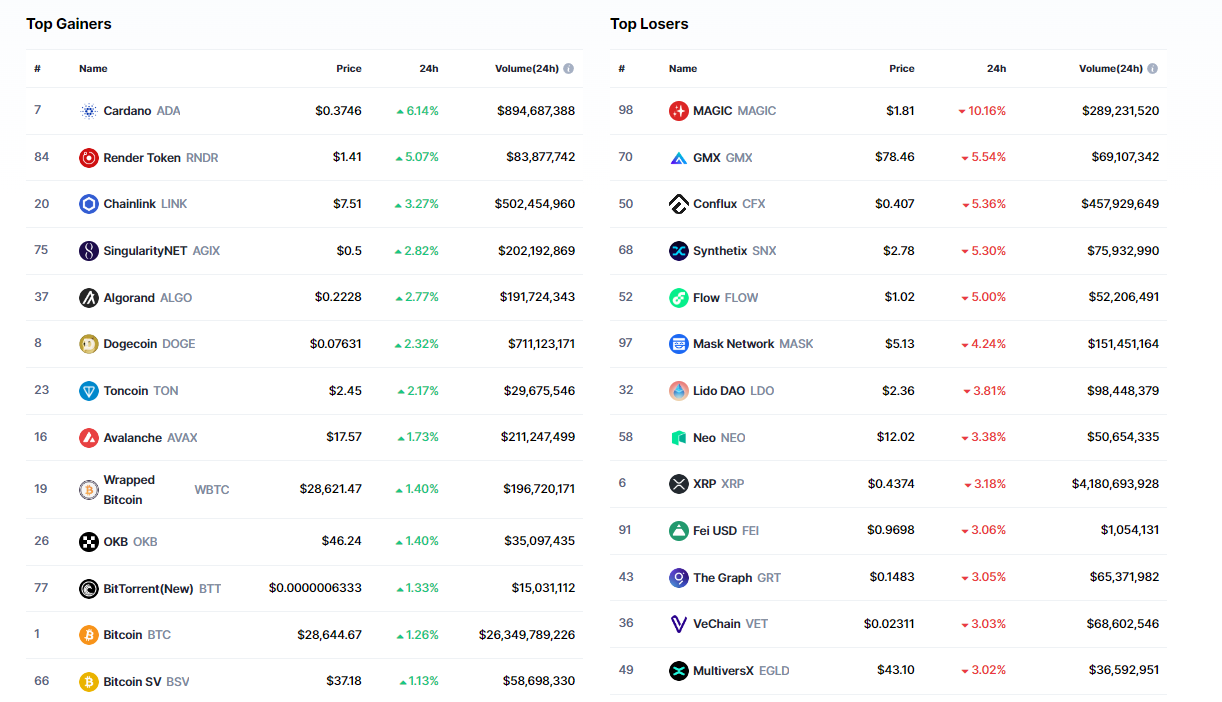 Lider kripto para birimi Bitcoin (BTC) son saatlerde yaşadığı yükselişler ile birlikte 28.750 dolar seviyelerine kadar yükseldi. Şuan itibariyle ise BTC 28.500 dolar seviyelerinden işlem görüyor.