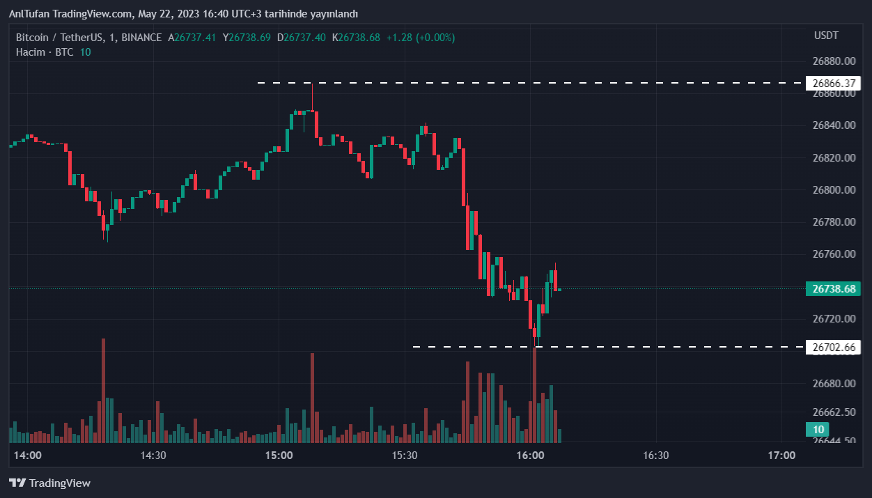 İlerleyen dakikalarda ise BTC’nin 26.500 dolar desteğini kaybetmemesi, yeniden yükselişlerin yaşanmasını sağlayabilir.