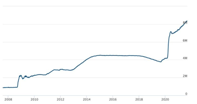 ABD Federal Rezerv‘in bilançosu sadece bu hafta içerisinde 8 milyar dolarlık daha büyüme elde etti ve toplamda 8,3 trilyon dolar gibi inanılmaz bir seviyeye ulaştı. FED bilançosunun tüm zamanların rekorunu bu kadar kısa sürede bu kadar sık kırması ise sanılandan çok daha tehlikeli olabilir.