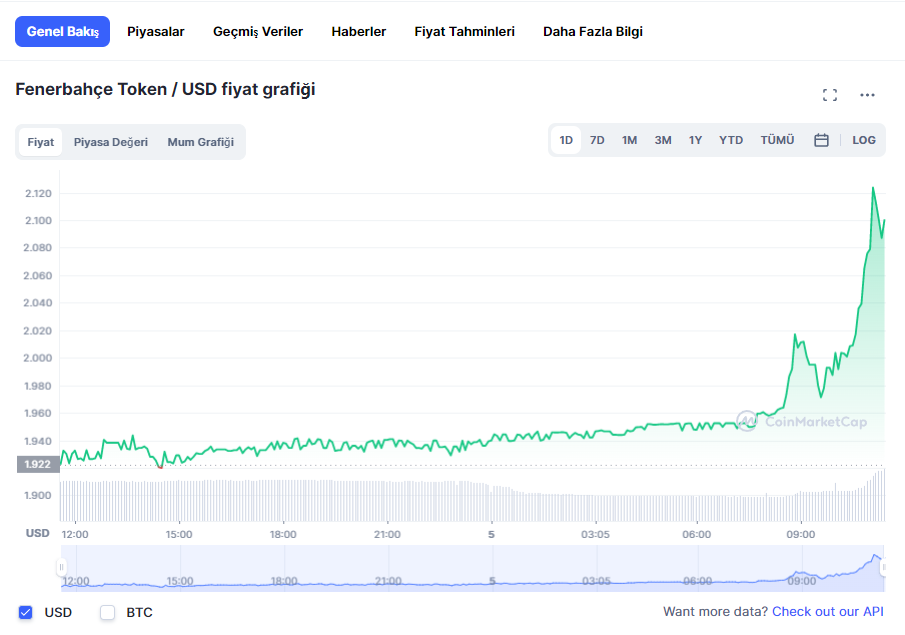 Bu gelen güzel haber ile birlikte ise Fenerbahçe Fan Token’in yukarı yönlü hamleler sergilemeye başladığı gözlemlendi.