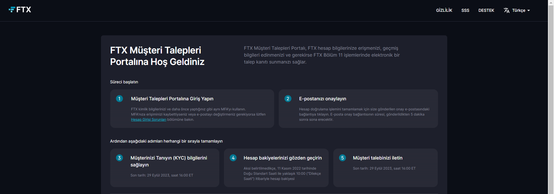 Geçtiğimiz süreçte yeni FTX yönetimi bir talep portalı oluşturduğunu duyurmuştu. Bu talep portalı geri ödenecek kullanıcı varlık miktarını tespit etmek için kullanıldı. FTX’de varlığı kalan kullanıcılar, talep formunu doldurmaları gerekiyor.