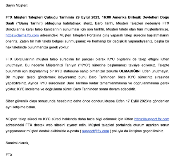Her ne kadar FTX’de kalan kripto varlıkların kısa bir süre içerisinde ödenmesi zor gibi gözüküyor olsa da, yine de okurlarımızın talep portalındaki gerekli adımları yerine getirmeleri önerilir.