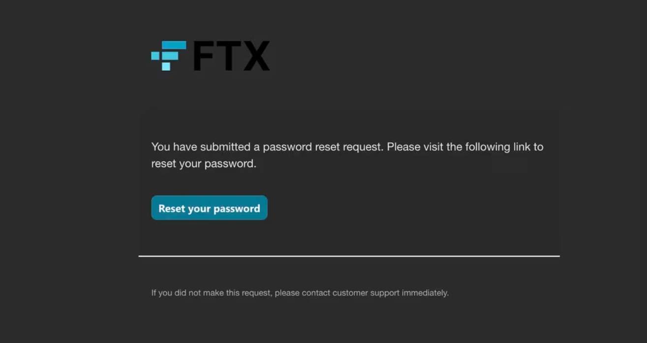 Bazı FTX kullanıcıları varlık talep platformunu kullanmalarının ardından FTX’in resmi e-posta adresinden (support@ftx.com) bir şifre sıfırlama maili aldı. Bu e-posta adresinin resmi olması, kullanıcıların bu maile güvenmelerine neden oldu.