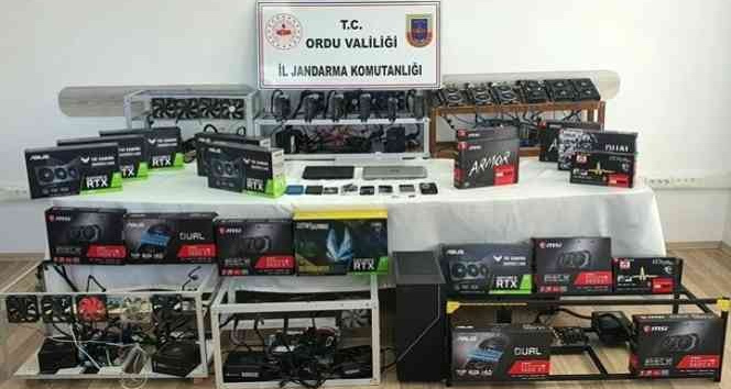 Ordu İl Jandarma Komutanlığının Altınordu ilçesinde başlattığı operasyonda değeri 560.000 Türk Lirasını bulan kripto para madenciliği için kullanılan cihazlar ele geçirildi. 4 adet flash bellek, 6 adet hard disk, 6 adet ana kart, 9 adet güç kaynağı, 25 adet ekran kartı, 9 adet ram bellek, 4 adet cep telefonu, 3 adet laptop, 15 adet soğutucu fan, 6 adet işlemci, 25 adet riser, 25 adet riser kablo ve 6 adet mining rig ele geçirildi.