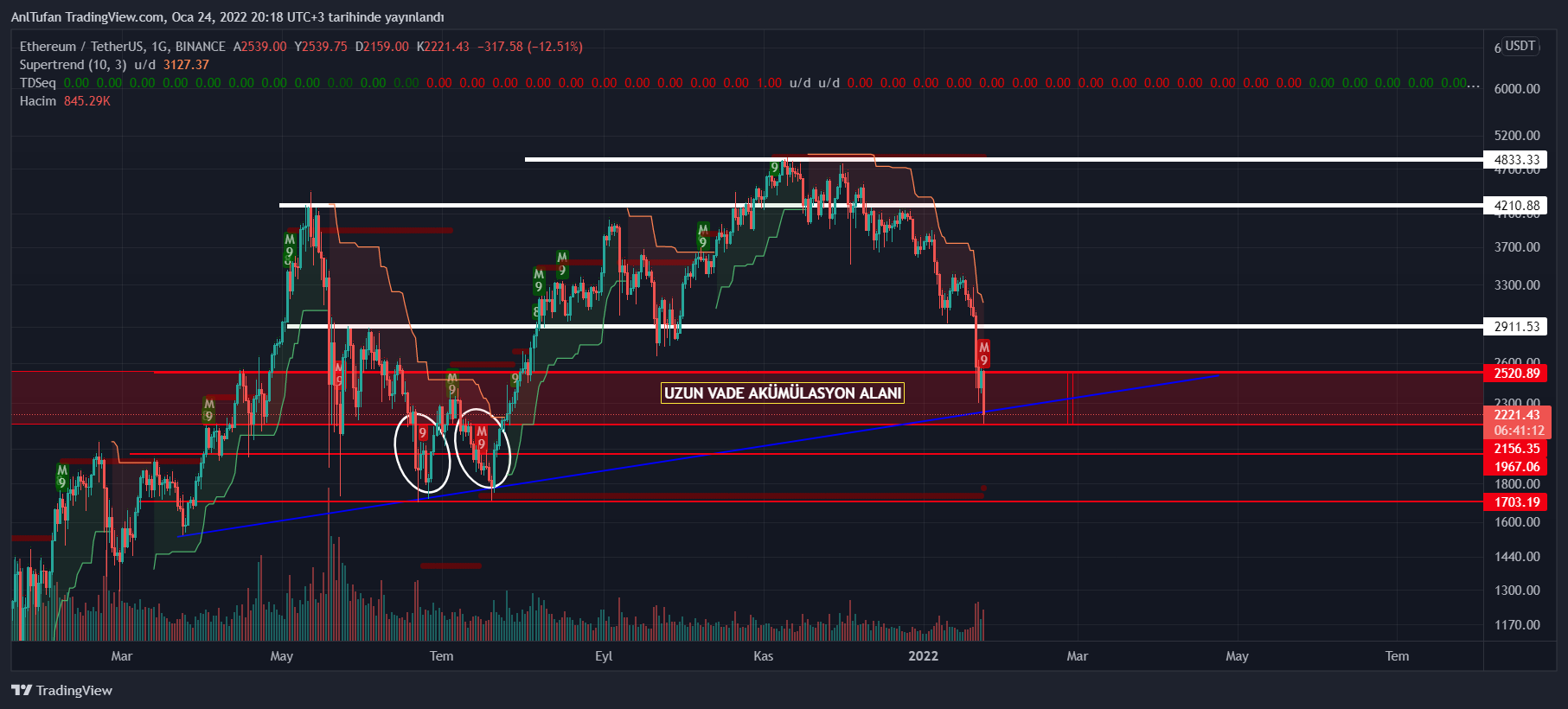 2100 – 2500 dolar aralığında bir süre akümüle olması beklenen Ethereum’un, Bitcoin’in tekrardan toparlanmasıyla beraber hızlı bir şekilde yükselişe geçip 2900 – 3000 doların üzerine çıkması beklenmekte.