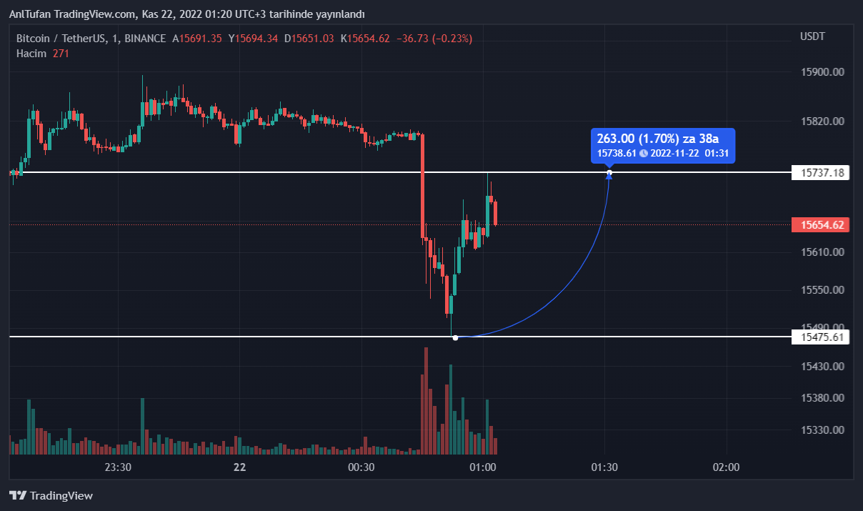 Bitcoin her ne kadar son açıklamalar ile birlikte 15.475 dolar seviyelerinden 15.737 dolar noktasına kadar yükselmiş olsa da, ilerleyen dakikalarda değer kaybetmeye devam edeceği tahmin ediliyor.