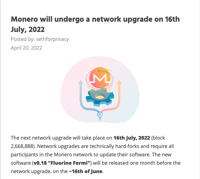 Bu yavaş yavaş başlayan ve bir anda hızlanan yükselişin sebebi ise Monero ekibini bekleyen güncelleme. Bizzat ekip tarafından yapılan açıklamada, ağın 16 Temmuz 2022 tarihinde büyük bir güncelleme geçireceği vurgulandı.