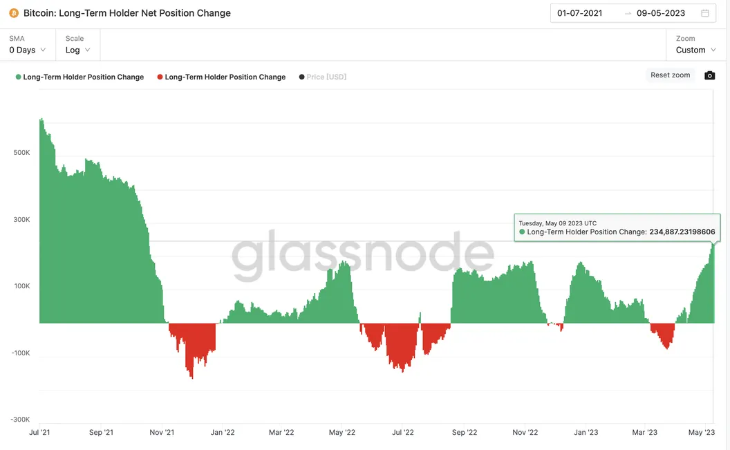 Blockchain analitik firması Glassnode, altı aydan uzun bir süredir kripto varlık tutan cüzdanları inceledi. Bu veriye göre cüzdanlardaki net BTC miktarı nisan ayında pozitife döndü ve hızlı bir şekilde artmaya başladı.