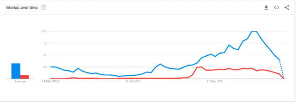 Google Trends verilerine bakıldığında, savaşın belirsizliğe sürüklediği kripto para sektöründe en çok darbeyi yiyen alanlardan birkaçının NFT’ler ve metaverse olduğu görülmekte.