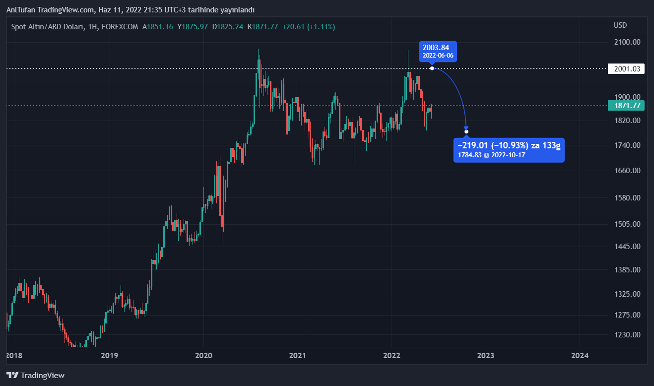 2000 dolar direnç seviyesini aşamayan ONS altın her ne kadar bu süreçte %10 değer kaybetmiş olsa da, Türk lirasının ABD dolarına karşı değer kaybı bu orandan yüksek olmasından ötürü gram altın yükseliş yaşıyor.