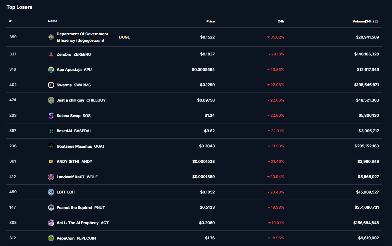 Başarılı bir zincir içi veri sağlayıcısı olan CoinMarketCap‘in son aktardığı bilgilere göre bugün itibariyle en büyük düşüşü -%35 ile birlikte DOGE (Dogecoin değil) isimli altcoin gerçekleştirdi.