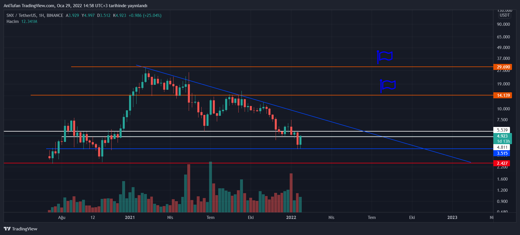 SNX Düşen Trendine Doğru İlerlemeye Devam Ediyor!