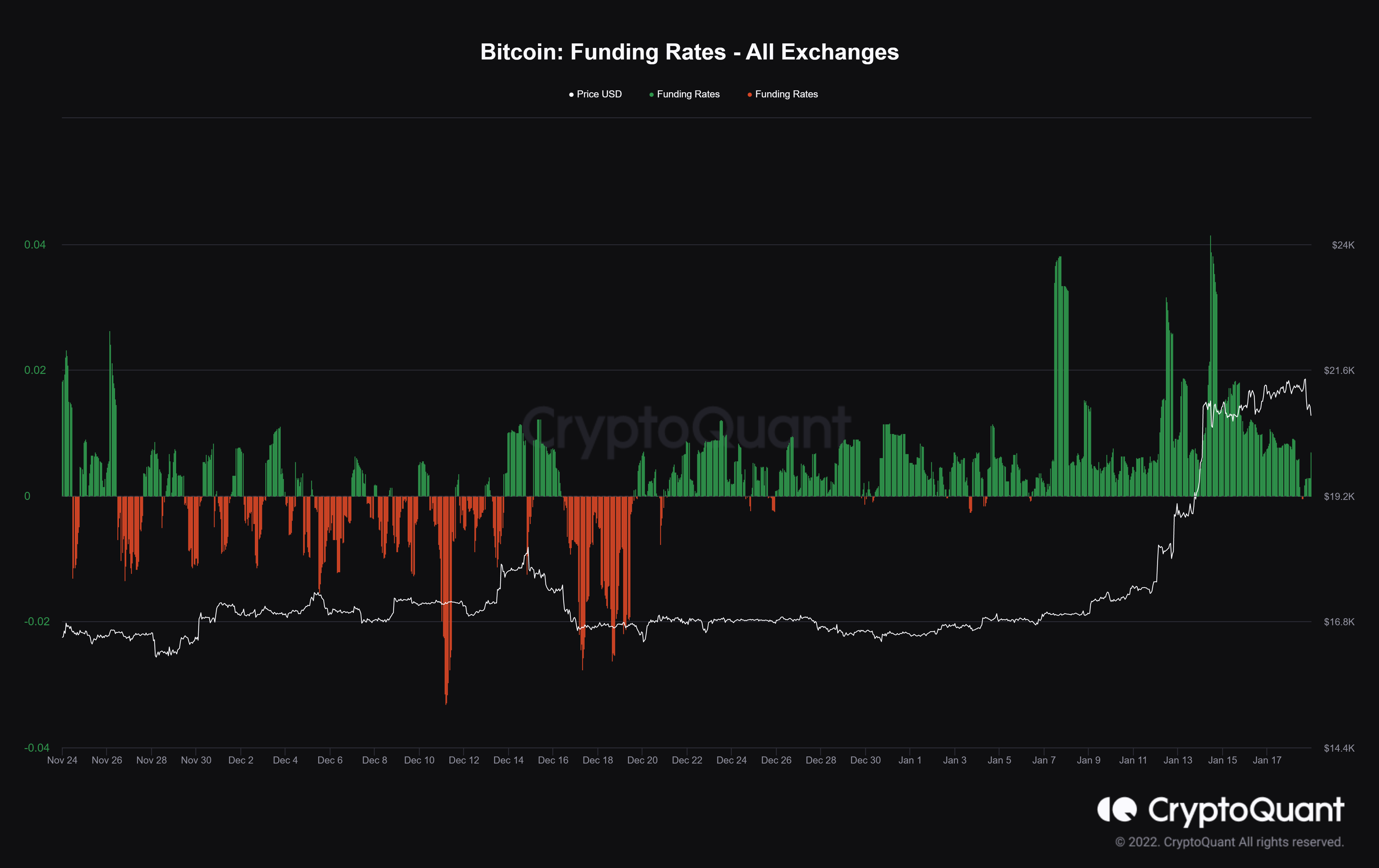 Lider kripto para birimi Bitcoin’deki geri çekilmenin ana nedeninin ise fon oranları olduğu görülüyor. BTC’nin yükselişleri ile birlikte açılan long pozisyonlar, son dakikalarda yavaş yavaş tasfiye edilmeye başladı.