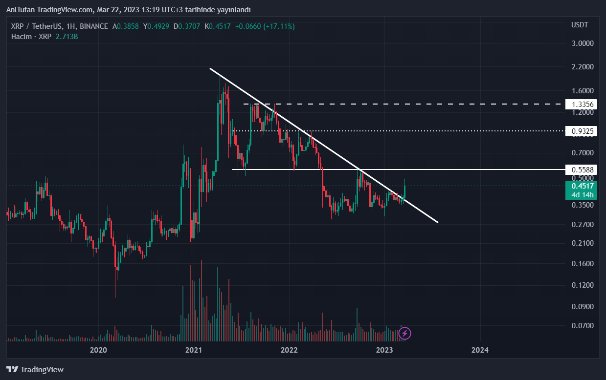 İlerleyen günlerde 0.55 dolar direncine kadar yükselebilecek olan XRP, mega ralli döngüsü başlatmadığı takdirde bu direnç seviyesini aşamayabilir gibi gözüküyor.