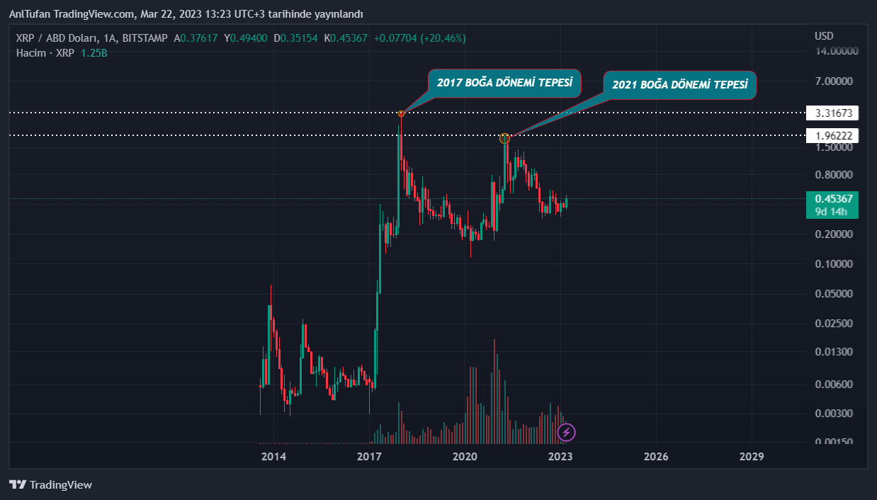 XRP’nin mega ralli döngüsü başlatması halinde ise 1 dolar veya 3 dolar seviyeleri birer hayal olmayacaktır. 2017 yılında 1000 x’ten fazla yükseliş yaşayan XRP, ilerleyen yıllarda tekrardan benzer bir yükseliş yaşamayı başarabilecek mi? merak konusu..