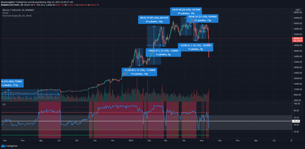 Teknik anlamda birçok analistin ve yatırımcının yakın zamanda yukarı yönlü kırılım beklediği BTC, fundamental yani temel anlamda genel haberler üzerine düşüşe geçti. Geçmişte boğa piyasalarında bu tarz bezdirici düşüşlerin yaşandığı görülüyor. Bu düşüşler sırasında trend için en önemli noktanın 20 haftalık hareketli ortalama olduğu vurgulanıyor.
