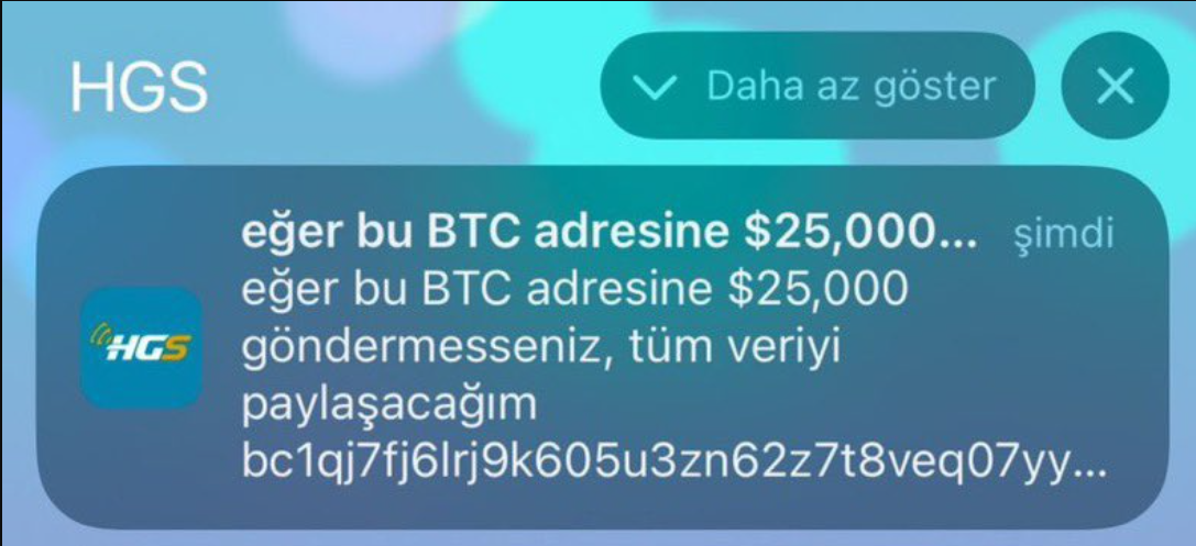 Son dakikalarda Türk kripto para yatırımcılarının gündeminde HGS uygulamasından gelen tehdit bildirimleri yer alıyor. HGS uygulamasını hackleyen bilgisayar korsanları, kullanıcıları kişisel verileri yaymakla tehdit etmeye başladı.