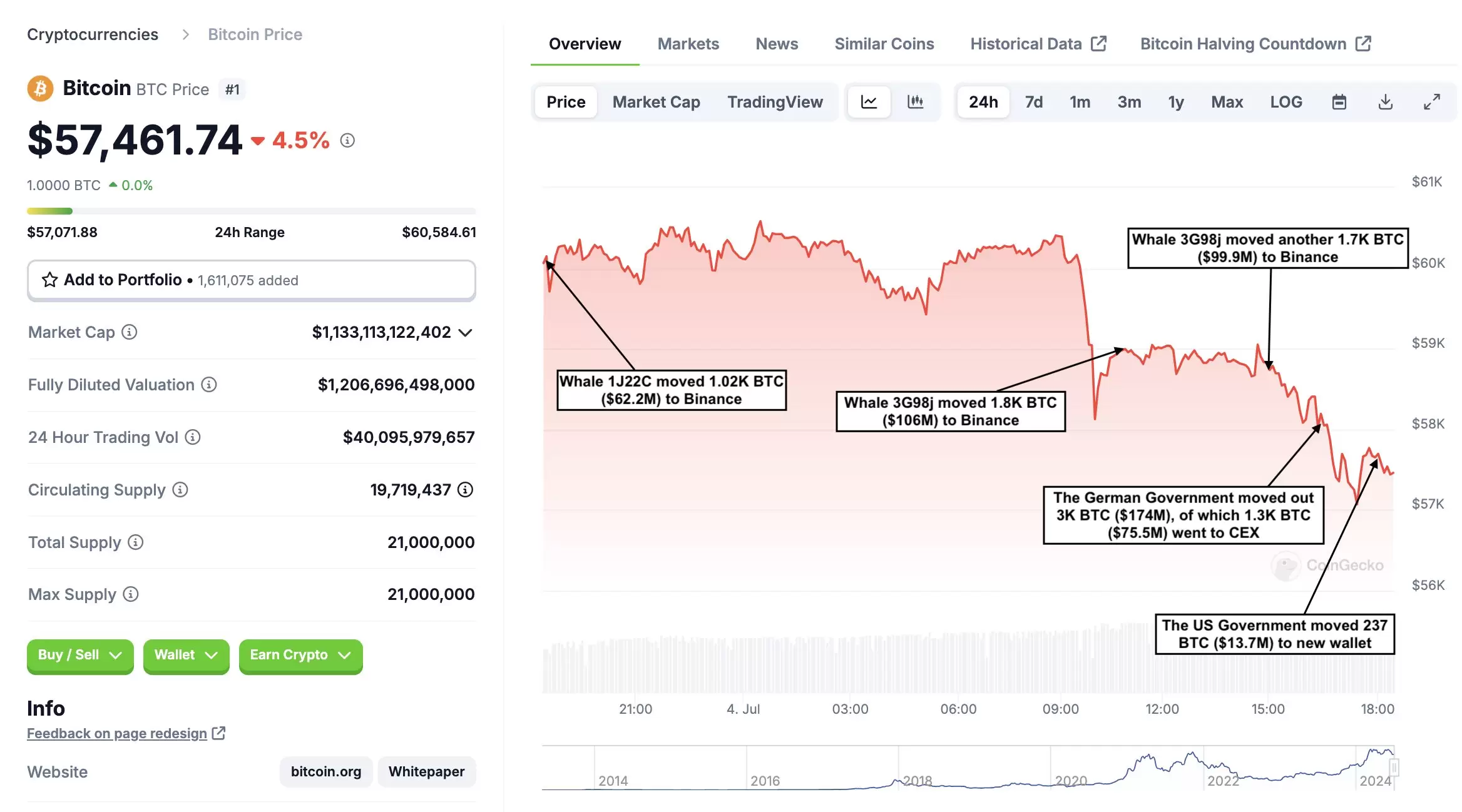 Kripto balinalarının ve hükümetlerinin BTC satışlarının devam etmesi, Bitcoin’de çok daha büyük düşüşleri tetikleyebilir.