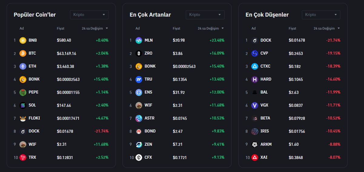 İşte Binane’deki En Çok Artan ve Düşen Altcoin’lerinin Listesi!