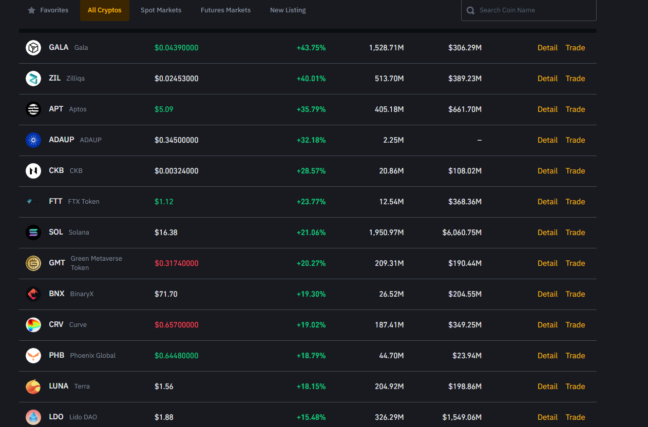 GALA’nın haricinde aşağıda yer alan altcoin’lerde ciddi yükselişler yaşamayı başardı: