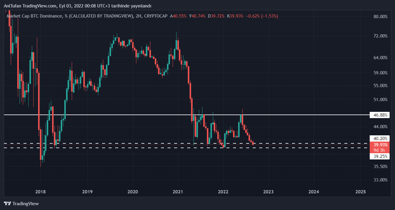 Her ne kadar BTC’nin piyasa hakimiyetinin ilerleyen günlerde her senaryoda yükselişe geçmesi beklense de, bu yükselişlerin Bitcoin değer kazanırken yaşanması altcoin’lerin çöküş yaşamasını engelleyecektir.