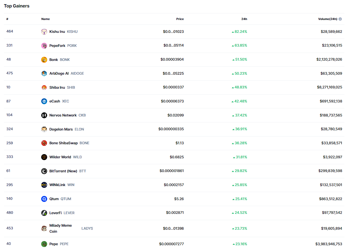 Her ne kadar kripto para yatırımcıları birçok altcoin’in Bitcoin’in yükselişlerine ayak uyduramamasından şikayetçi olsa da, meme coin‘lere yatırım yapan kişiler yüklü kazançlar elde etmeye devam ediyor.