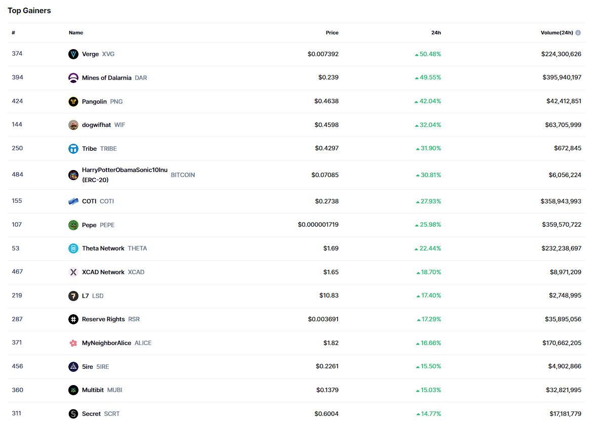 Başarılı bir veri sağlayıcısı olan CoinMarketCap’in paylaştığı bilgilere göre bugünün en çok yükselen altcoin’i Verge (VGX) oldu.