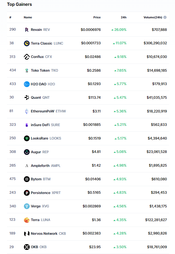 Başarılı bir veri sağlayıcısı olan CoinMarketCap’in aktardıklarına göre, ilk 500 kripto para birimi içerisinde bugün itibariyle en büyük yükselişi Revain (REV) isimli altcoin gerçekleştirdi.