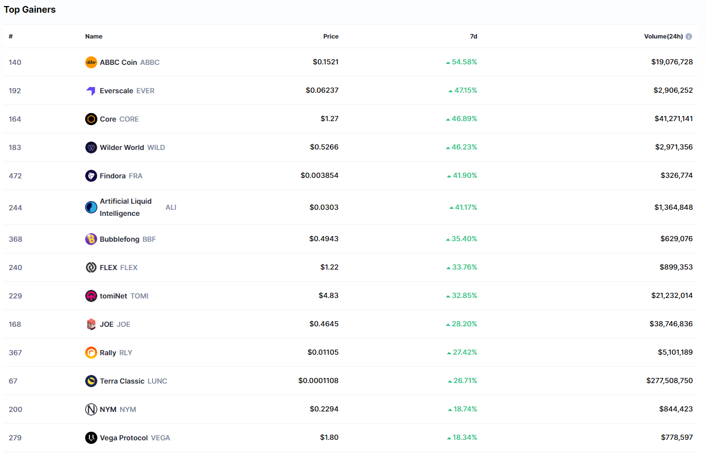 Bu hafta ABBC haricinde şu altcoin’lerde kayda değer yükselişler yaşadı: