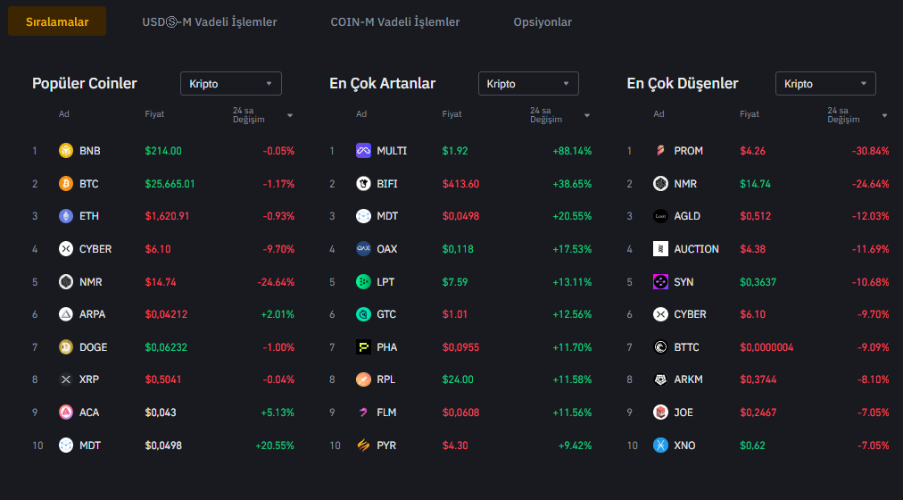 MULTI haricinde, BIFI, MDT, OAX, LPT ve GTC‘de yukarı yönlü hamleler sergiledi. Bugün Binance’de listelenmiş toplamda 9 adet altcoin yüzde 10’dan fazla değer kazandı.