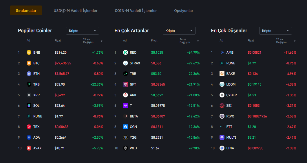 Binance’deki Altcoin’ler Nasıl Bir Gün Geçirdi?