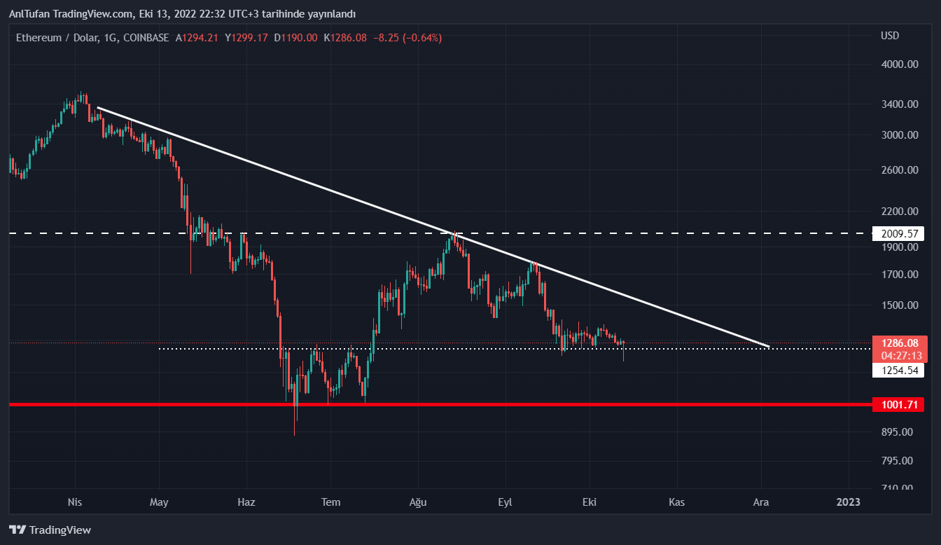 Ethereum’un 1.250 dolar desteğinin altında günlük veya haftalık kapanış yapması ise 1.000 dolar seviyelerine kadar bir düşüşün meydana gelmesine neden olabilir.