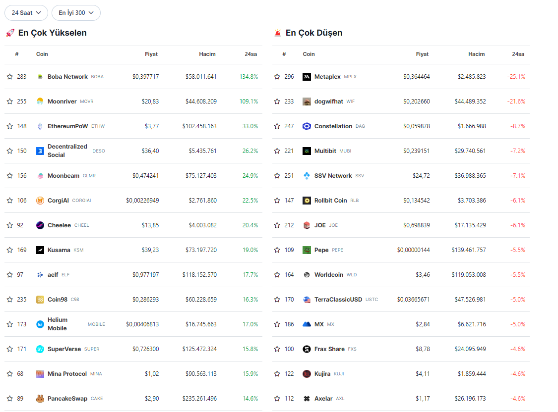 Başarılı bir veri sağlayıcısı olan CoinGecko’nun aktardıklarına göre piyasa değerine göre ilk 300 kripto para birimi içerisinde son 24 saat özelinde en çok artış yaşayan altcoin Boba Network (BOBA) oldu.