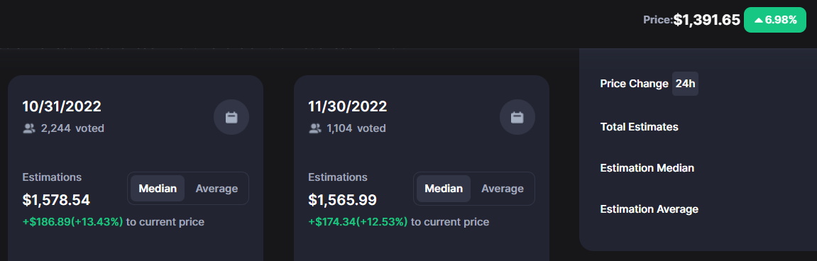Yatırımcıların CoinMarketCap üzerinde yaptığı tahminlere göre, lider altcoin Ethereum ekim ayının sonunda 1.565 dolar seviyesine ulaşacak.
