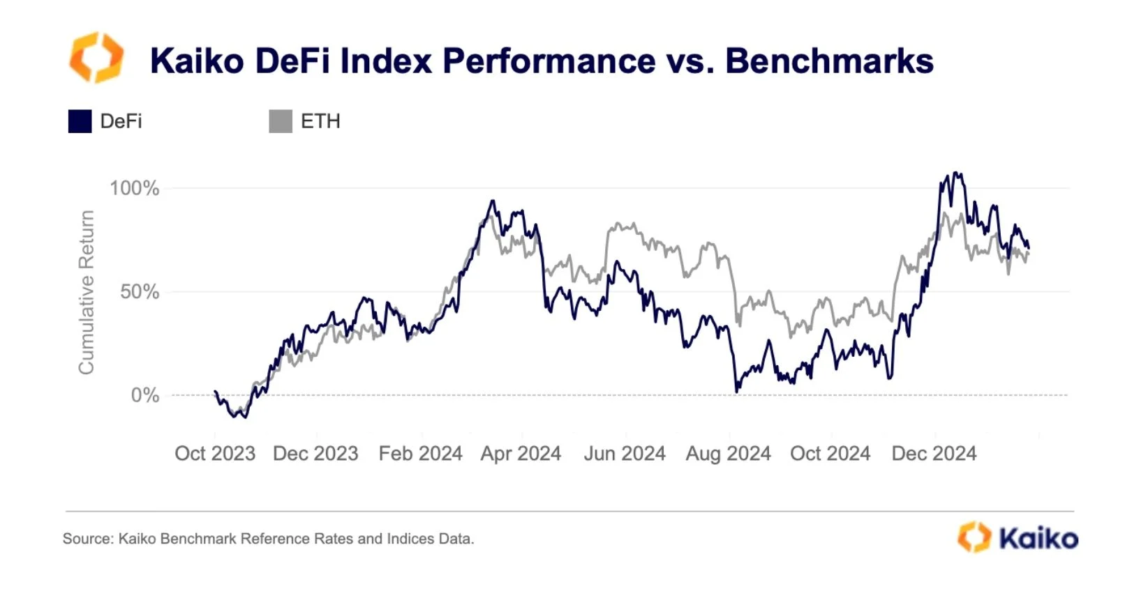Kaiko Research analistleri Adam McCarthy ve Dessislava Aubert merkezi olmayan finans (DeFi) sektörünün iyi göründüğünü söyledi ve şu sözleri aktardı: