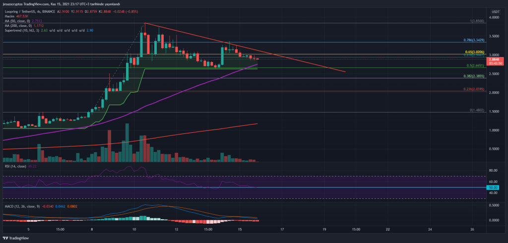 Altta belirtildiği gibi 2.66 dolar desteği bulunan LRC’de yukarı yönlü bir harekette kırmızı düşüş trendinin direnç göstermesi bekleniyor. Şu anlık 3 dolar civarına denk gelen bu direncin geçilmesiyle yeni bir yükseliş dalgasıyla fiyatın ATH seviyesini yeniden denediği görülebilir.