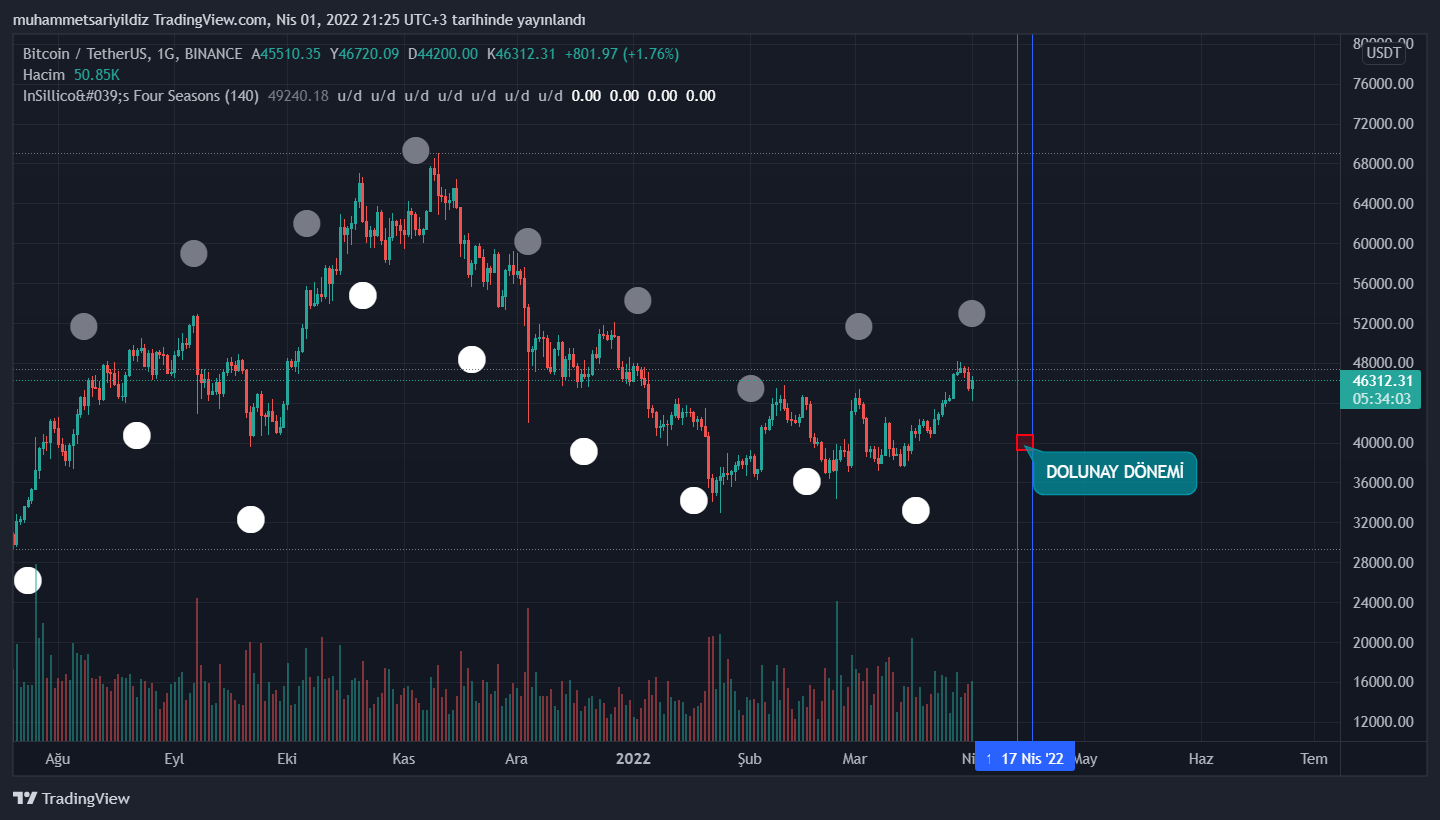 Birçok dolunay dönemlerinde dip seviyelerde olan Bitcoin, dolunayın ardından sonra ise yükselişe geçtiği gözlenmekte.