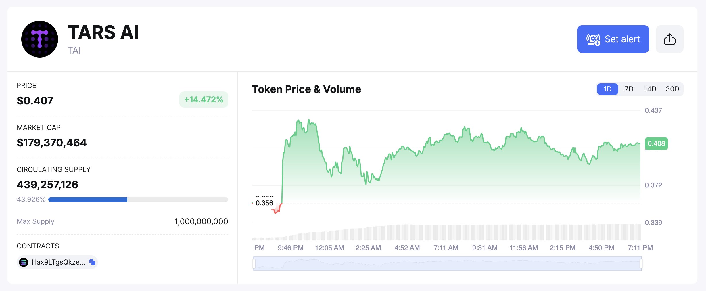 “Keskin fiyat artışının ortasında iki yeni cüzdan 9,09 milyon adet TAI (3,62 milyon dolar değerinde) biriktirdi.