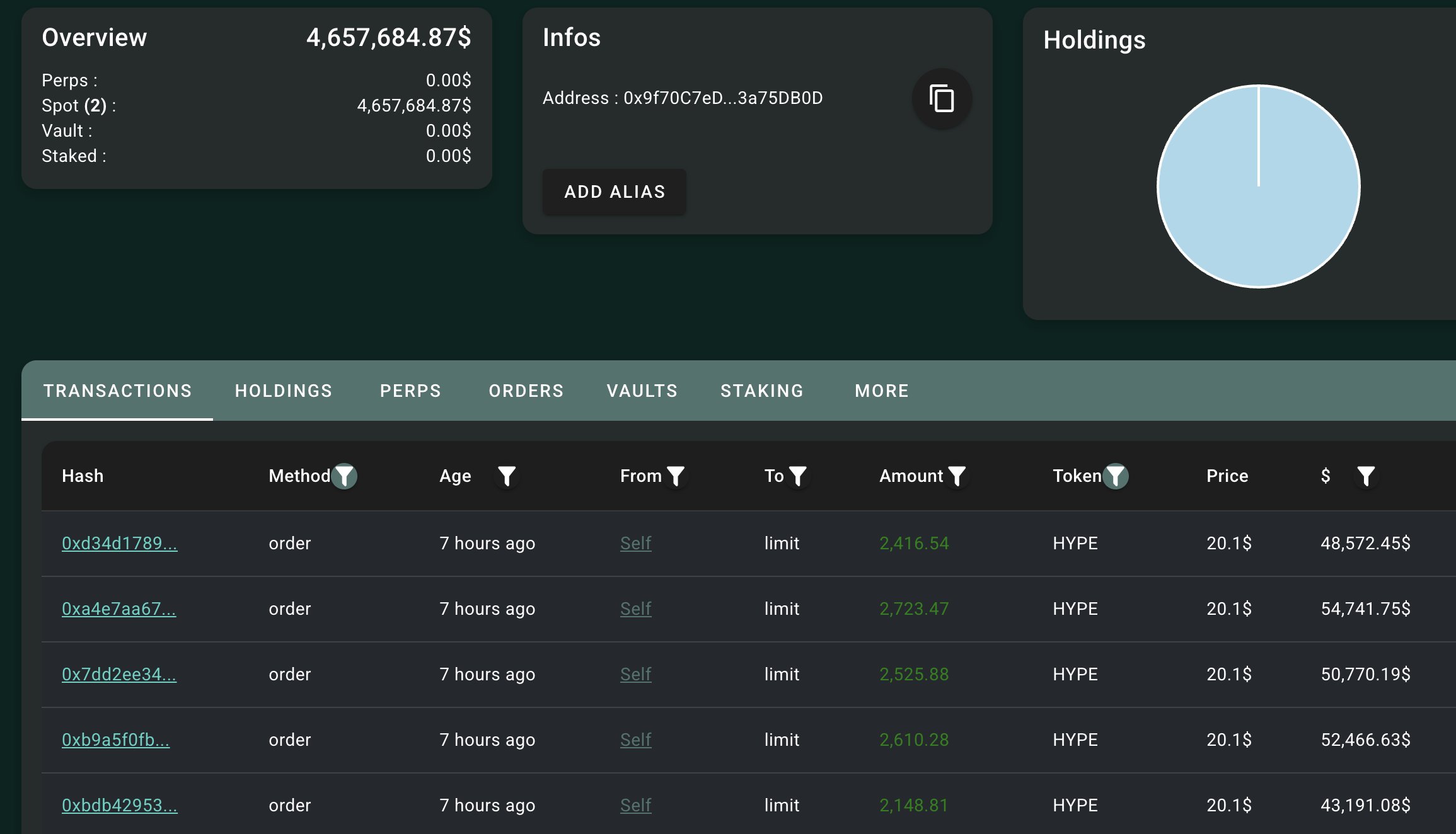 “0x9f70…DB0D, 15 saat önce HYPE almak için Hyperliquid’e 5M adet USDC yatırdı.