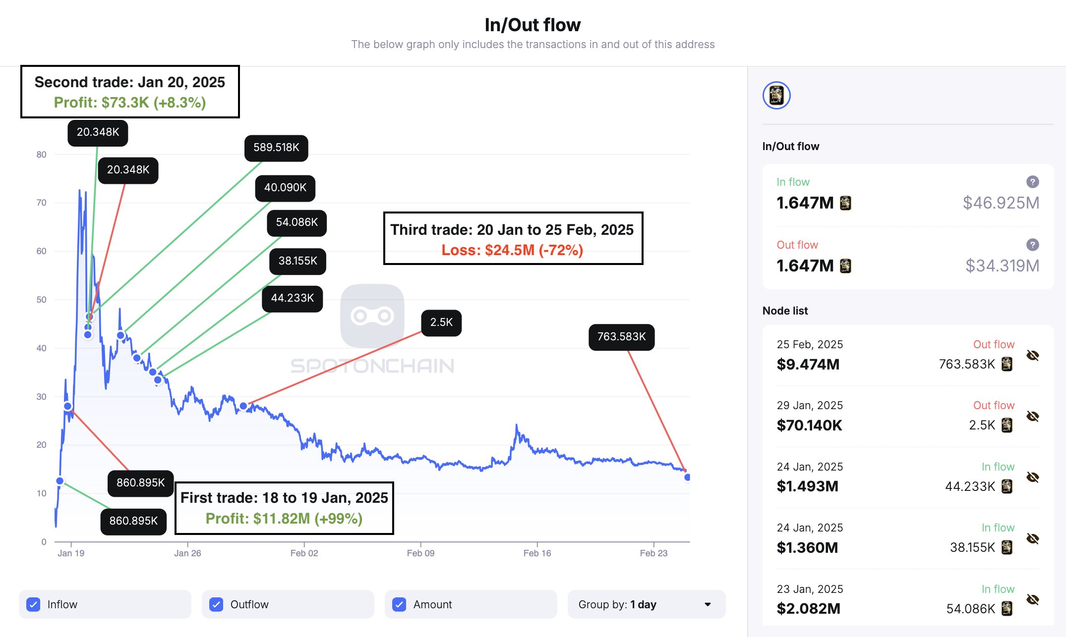 Düşüşlerin artmasıyla birlikte birçok kripto balinası kripto varlık satışları yapmaya başladı. Zincir içi veri uzmanları ise kısa süre önce balinaların zararına TRUMP ve MELANIA satışı yaptığını tespit etti.