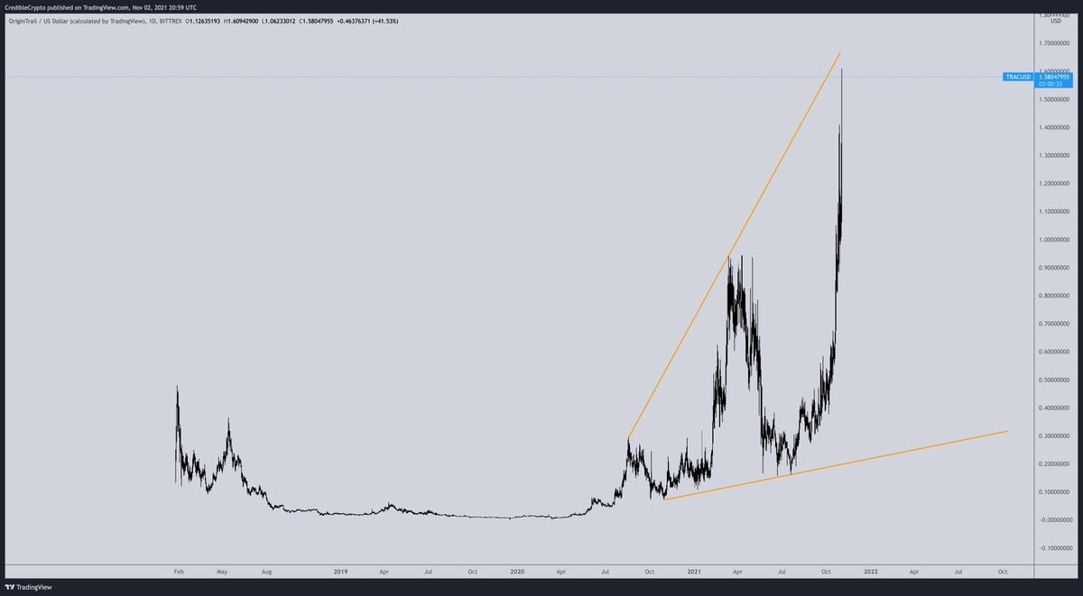 Daha önce takipçilerine OriginTrail (TRAC) Coin’i öneren ünlü analist, TRAC Coin’in Coinbase Pro borsasında listelenmesiyle birlikte %300’den fazla yükseliş sağlamıştı. TRAC Coin’den en fazla kazanan Credible Crypto takipçileri olmuştu.