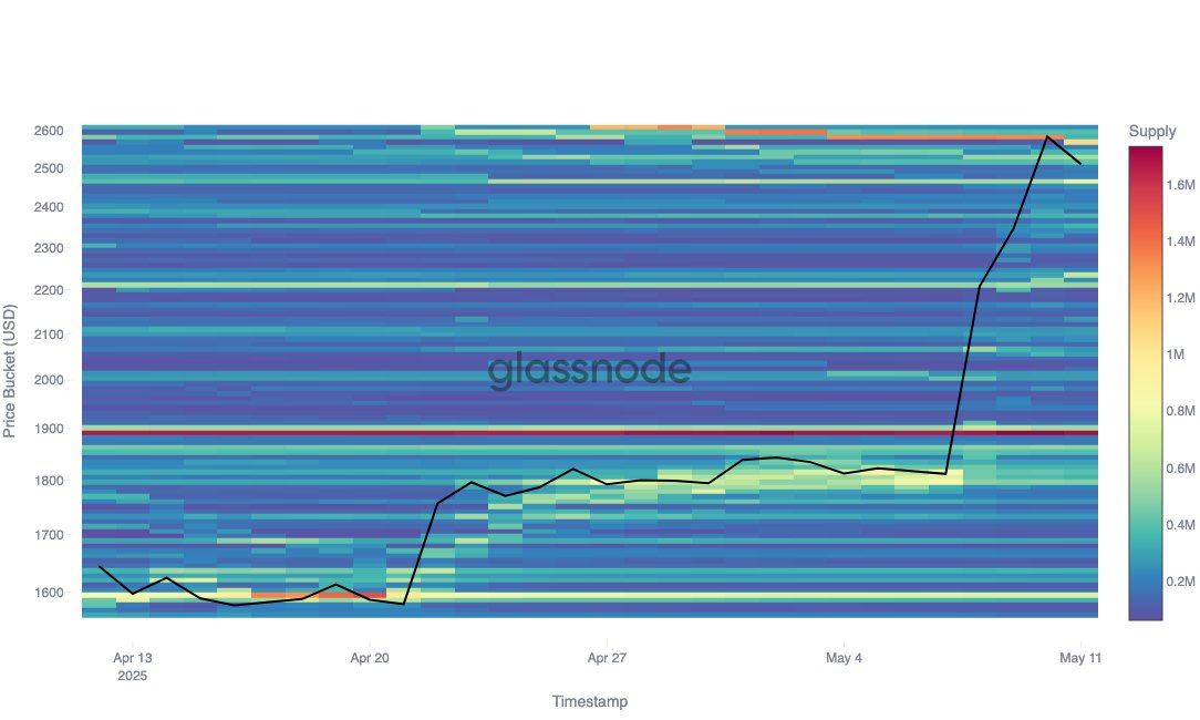- Ethereum’un 1.800 dolardan 2.500 dolara kadar olan sert yükselişi, bu fiyat aralığında arzın düşük olmasından destek buldu. Ancak ralli, yaklaşık 1,3 milyon ETH’nin elde tutulduğu 2.580 dolar seviyesinde duraksadı.
